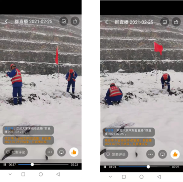 2月24日傍晚,一場瑞雪突然降臨,焦作迎來了2021年的第一場雪。這一場突如其來的降雪,給我們原計劃25日的爆破作業(yè)帶來了挑戰(zhàn)。 25日早,雪已經停了,并且氣溫徘徊在零度之上,雖然冷,但道路沒有結冰,炸藥運輸車也安全準時的送達到了現(xiàn)場。為了順利開展爆破作業(yè),馬村分公司的同志們在劉黨經理的帶領下,吃過早飯后就立即組織進入礦山,開展工作。爆破工作嚴格按照規(guī)定及河南省公安廳的要求下進行,全部流程都進行釘釘直播,留存錄像。 腳踏著皚皚白雪的他們是堅守的勇士,哪怕是雪水濕了鞋襪,濕了褲腳,手指被凍得通紅,他們依然嚴格按照操作規(guī)范,認真完成每一個步驟。 致敬!風雪中的礦山人!致敬!所有風雪中努力工作的第一線人員! (以下圖片來源于爆破錄像截圖及釘釘直播截圖)  |