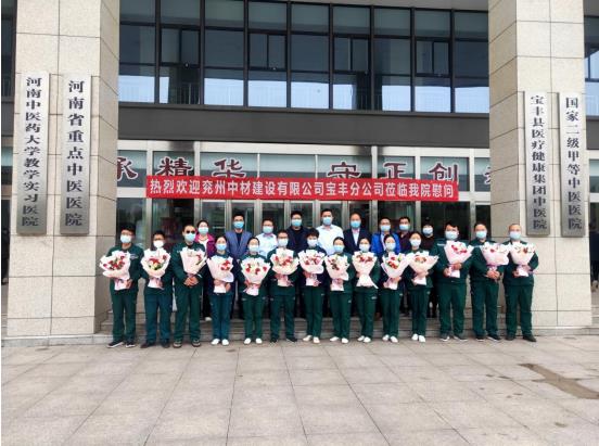 寶豐分公司經理宋道明與中醫院急救科護士交談:“你們辛苦了,目前疫情形勢嚴峻,你們堅守崗位、迎難而上,為疫情防控做出了突出貢獻,我代表兗州中材寶豐分公司祝你們節日快樂。”