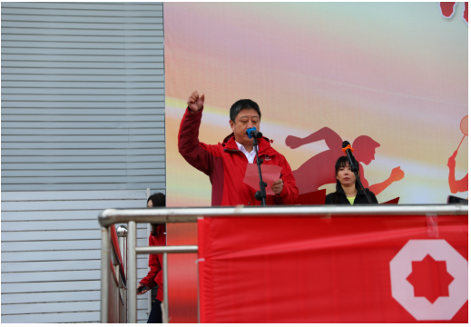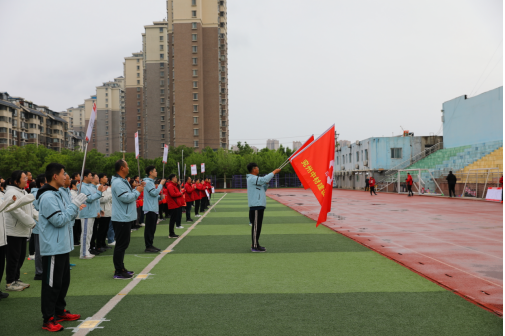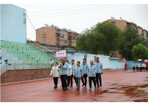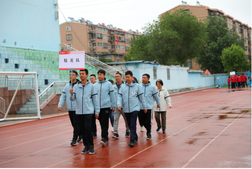 (兗州中材黨委委員、副總經理顏景祥致詞) 踏著激昂的運動員進行曲節拍,運動員們精神抖擻、斗志昂揚,排列著整齊的方陣,在旗手的引領下,喊著響亮的口號,依次有序地走過主席臺。