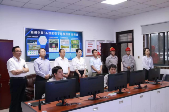 隋同波一行首先參觀了礦山5G智能控制室,并認真聽取了關于5G智能數(shù)字化綠色礦山建設情況匯報。