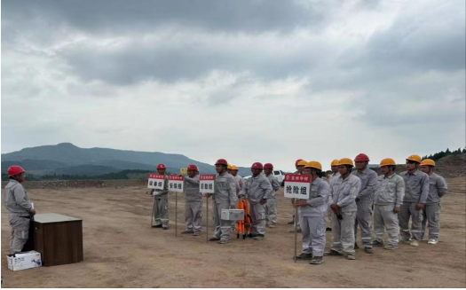 本次演練主要模擬515平臺發(fā)生車輛傷害事故,一名員工被挖機回轉時碰傷倒地,頭部撞擊受傷,傷情嚴重,進行緊急救援的情景。
