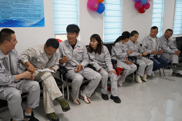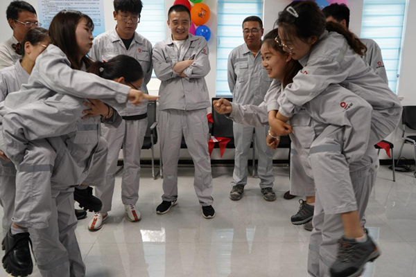 為豐富職工業(yè)余文化生活,提升團(tuán)隊(duì)凝聚力和向心力,以更好成績獻(xiàn)禮建黨100周年,5月13日,由中材礦山主辦兗州中材曲阜分公司承辦的“逐夢新時(shí)代,奮斗新征程”主題團(tuán)建活動在曲阜分公司舉行。中材礦山黨群部部長鄔云齊齊格、兗州中材黨群部部長李增光、綜合辦公室主任李翠松、黨群部逯瑞、曲阜分公司及泗水分公司青年團(tuán)員參加了此次活動。 團(tuán)建活動場地設(shè)在曲阜分公司辦公室,活動項(xiàng)目有:我來比你來猜 、疊報(bào)紙、吸管運(yùn)輸、拋繡球、集體造句、猜數(shù)字。 1、我來比你來猜 表演的一組兩人先要面對面(一人為表演動策劃,一人為猜測者),當(dāng)表演者表演完,猜測者能猜出表演者所做動作的成語或詞語,在規(guī)定時(shí)間內(nèi),猜對詞語最多的一組獲勝。 2、疊報(bào)紙 將2張4開的報(bào)紙放在地上,每張報(bào)紙上站5個(gè)人,每個(gè)小組派一個(gè)代表與對方猜拳,輸?shù)舻男〗M須將腳下的報(bào)紙對折后再站在上面(所有的雙腳都不許著地),直到其中一方站不上去為止。 3、吸管運(yùn)輸 每人嘴里叼一支吸管,第一個(gè)人在吸管上放一個(gè)有一定重量的鑰匙環(huán),用嘴叼吸管的姿勢把鑰匙環(huán)傳給下個(gè)人,直到傳到最后一個(gè)人嘴叼的吸管上,用時(shí)最短組獲勝。 4、拋繡球 每組推選四個(gè)人,一個(gè)人背筐,其他三人投球,每人三個(gè)球,最終以接球的多少決定勝負(fù)。 5、集體造句 游戲開始向每小組第一位組員隨意在紙上寫一個(gè)字,然后將筆和紙傳給第二人,第二人按要求寫完一個(gè)字后交給第三位組員……直到組成一個(gè)句子。 6、猜數(shù)字 先在一張紙上寫一個(gè)數(shù)字,讓裁判看見,之后大家依次說一個(gè)數(shù)字,由裁判告知猜得數(shù)字比預(yù)先寫的數(shù)字是高了還是低了,逐步逼進(jìn)目標(biāo)。 活動結(jié)束后,曲阜分公司為參加活動的青年團(tuán)員頒發(fā)了紀(jì)念品。 通過活動的開展,使員工在枯燥繁忙工作之余得到調(diào)節(jié)和緩解、實(shí)現(xiàn)勞逸結(jié)合,促進(jìn)員工的工作積極性,增強(qiáng)員工凝聚力和向心力,培育員工的企業(yè)歸屬感和集體榮譽(yù)感,激勵(lì)員工全身心投入工作,進(jìn)一步激發(fā)了員工們團(tuán)結(jié)奮進(jìn)、凝心聚力的干勁,為推動企業(yè)高質(zhì)量發(fā)展貢獻(xiàn)自己的力量。