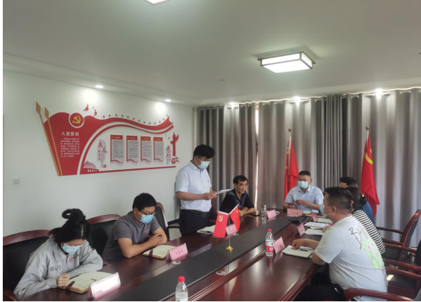 2022年6月10日兗州中材禹州蕭縣黨支部與焦作晉城黨支部在白坪分公司召開預備黨員轉正會議,公司黨委副書記何芳訓、黨群部長李增光、部長助理逯瑞及兩支部黨員參加了會議。 會議首先根據《發(fā)展黨員工作細則》和黨員、群眾無記名投票結果,經支委會研究決定,同意沈磊、劉洋同志轉為正式黨員。黨群部部長李增光要求,要加強支部建設,嚴格落實基層黨建工作,黨員每年學習燈塔教育課時平均在150學時,要盡職盡責做好本職工作。公司黨委副書記何芳訓對兩名同志成為正式黨員表示祝賀,并要求兩名同志要繼續(xù)努力,嚴格按黨員標準要求自己,為公司高質量發(fā)展貢獻力量。