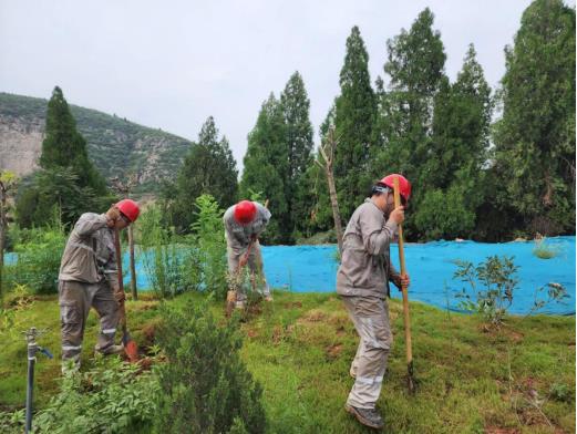 近年來,礦山變綠成為我國礦山發(fā)展的主旋律。河南片區(qū)黨支部以黨建為引領(lǐng),認(rèn)真踐行“綠水青山就是金山銀山”的生態(tài)理念,堅(jiān)定不移走“生態(tài)優(yōu)先、綠色低碳”的發(fā)展新路,以黨建統(tǒng)一思想、以黨建激發(fā)活力、以黨建凝聚人心,以紅色黨建助力綠色礦山建設(shè)抓手,將生態(tài)保護(hù)放在與生產(chǎn)、安全同等重要的位置。河南片區(qū)黨支部按照綠色發(fā)展理念,著力推動(dòng)綠色礦山建設(shè),經(jīng)過不懈的努力,僅白坪分公司礦區(qū)已累計(jì)種植樹苗幾千余棵。