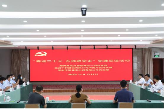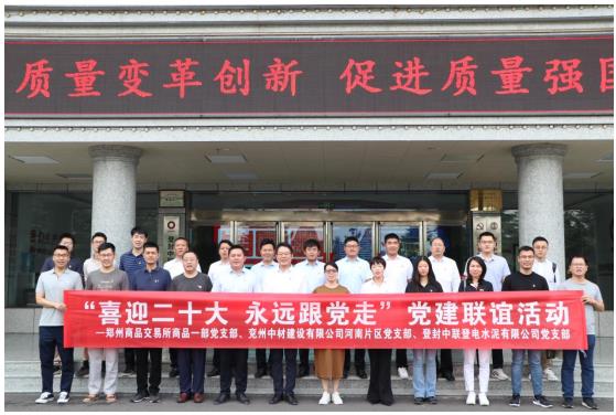 為進(jìn)一步深化黨建聯(lián)建共建,凝聚發(fā)展合力,9月17日上午,河南片區(qū)黨支部代表赴登封中聯(lián)登電水泥有限公司與登封中聯(lián)登電水泥黨支部、鄭州商品交易所商品一部黨支部開(kāi)展黨建聯(lián)誼活動(dòng)。