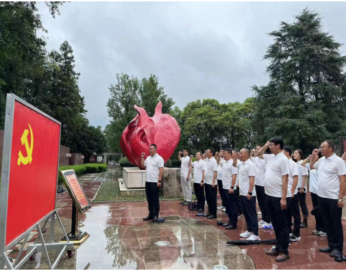 29日,共同前往紅色大別山,在鄂豫皖蘇區首府革命烈士紀念館中,以傾盆大雨寄哀思,拾級而上,同志們身著白色上衣整齊列隊肅立在革命烈士紀念碑廣場,面朝莊嚴肅穆的紀念碑,在宋道明同志的帶領下,全體低頭默哀,沉痛哀悼英勇犧牲的烈士,并共同向烈士敬獻花籃,同志們莊重的舉起右手,面對鮮紅的黨旗,“我志愿加入中國共產黨,擁護黨的綱領……永不叛黨。”在鏗鏘有力的誓詞中,重溫入黨初心,同志們初心受到洗禮,理想信念更加堅定。